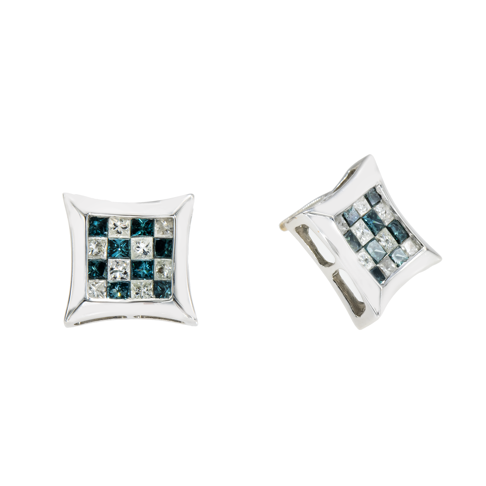 14K White Gold Square Cluster Checkers 1.00 ctw. Princess Cut Diamond Earrings