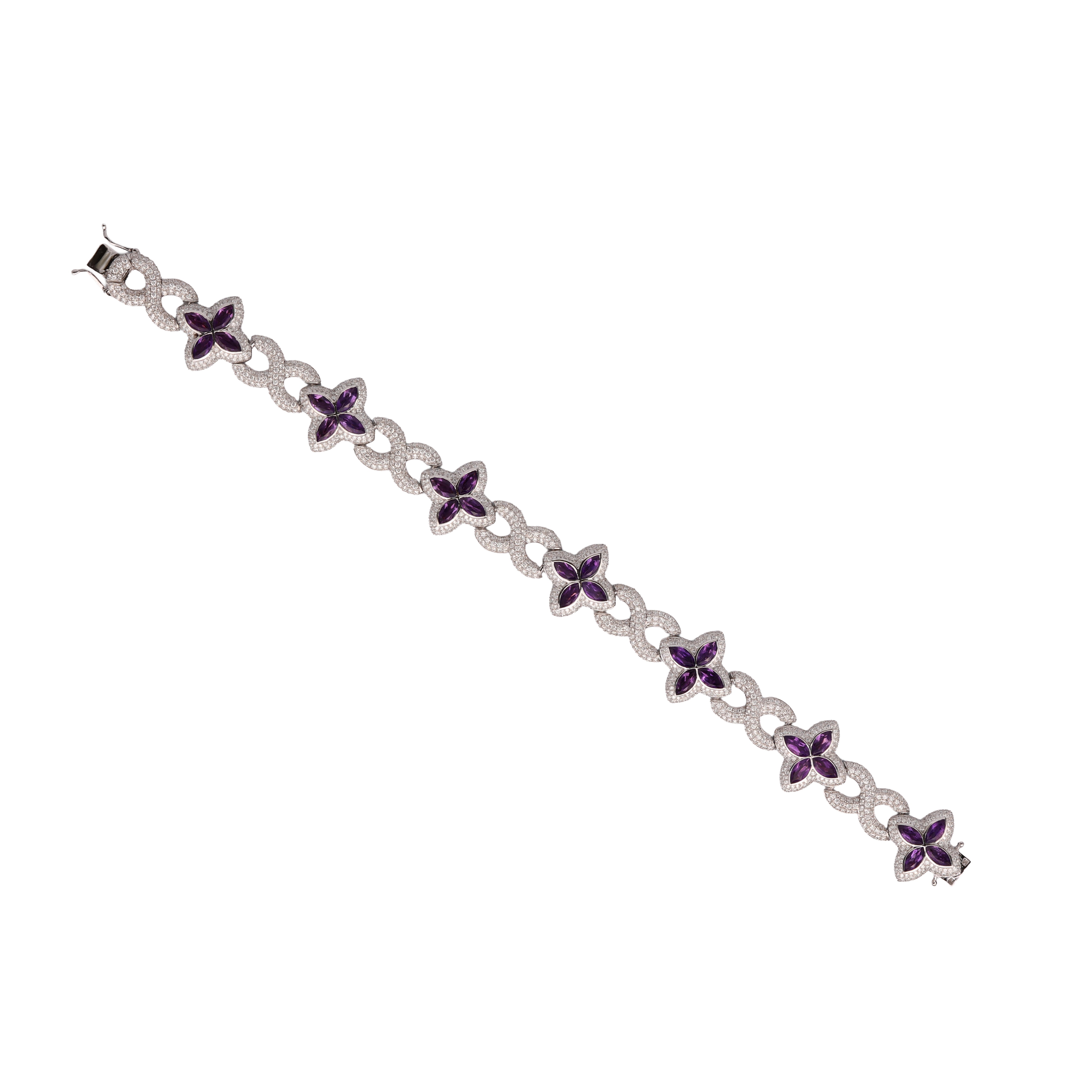 14K White Gold Leaf Clover Infinity Link Diamond Bracelet