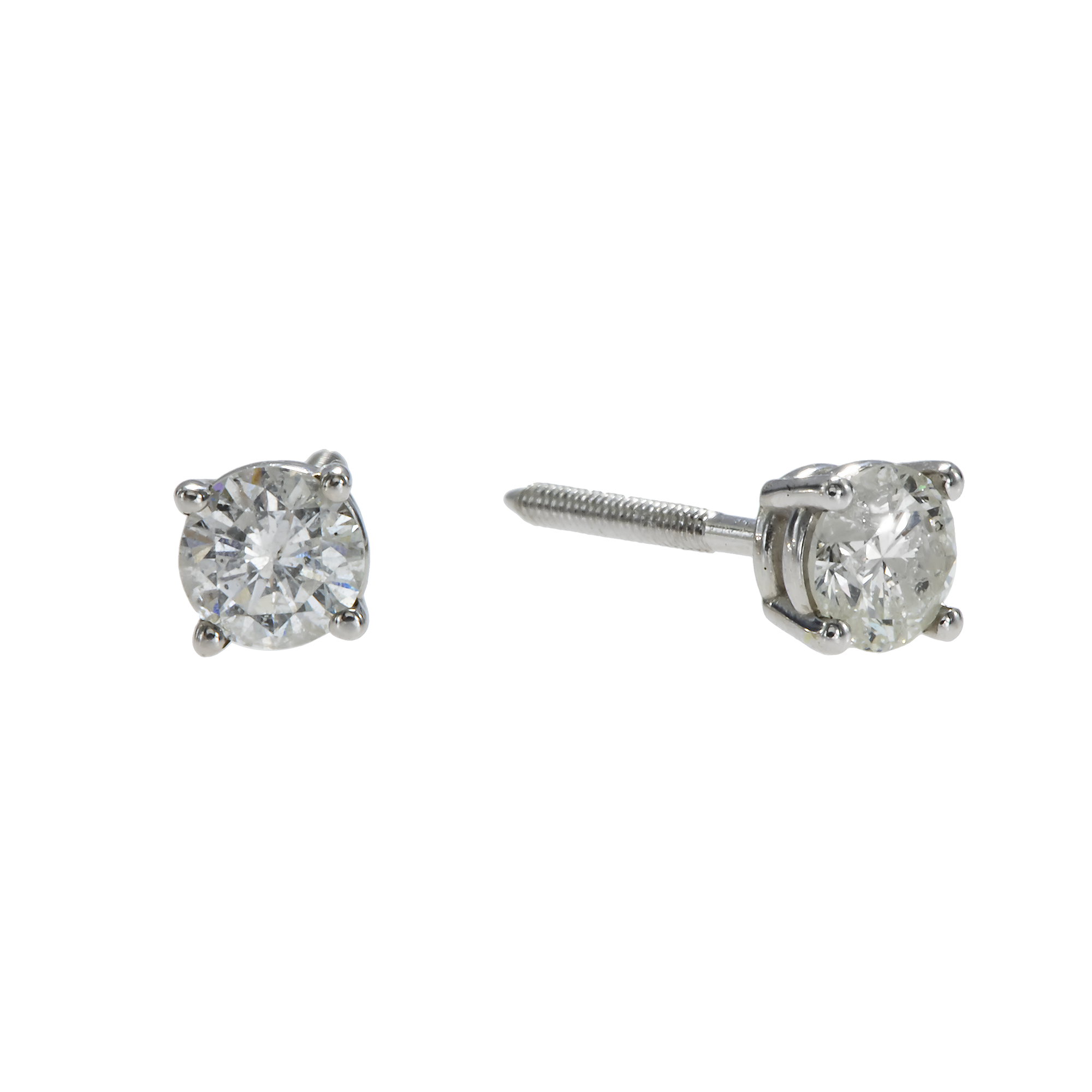 14K White Gold Solitaire Stud 0.60 ctw. Round Diamond Earrings