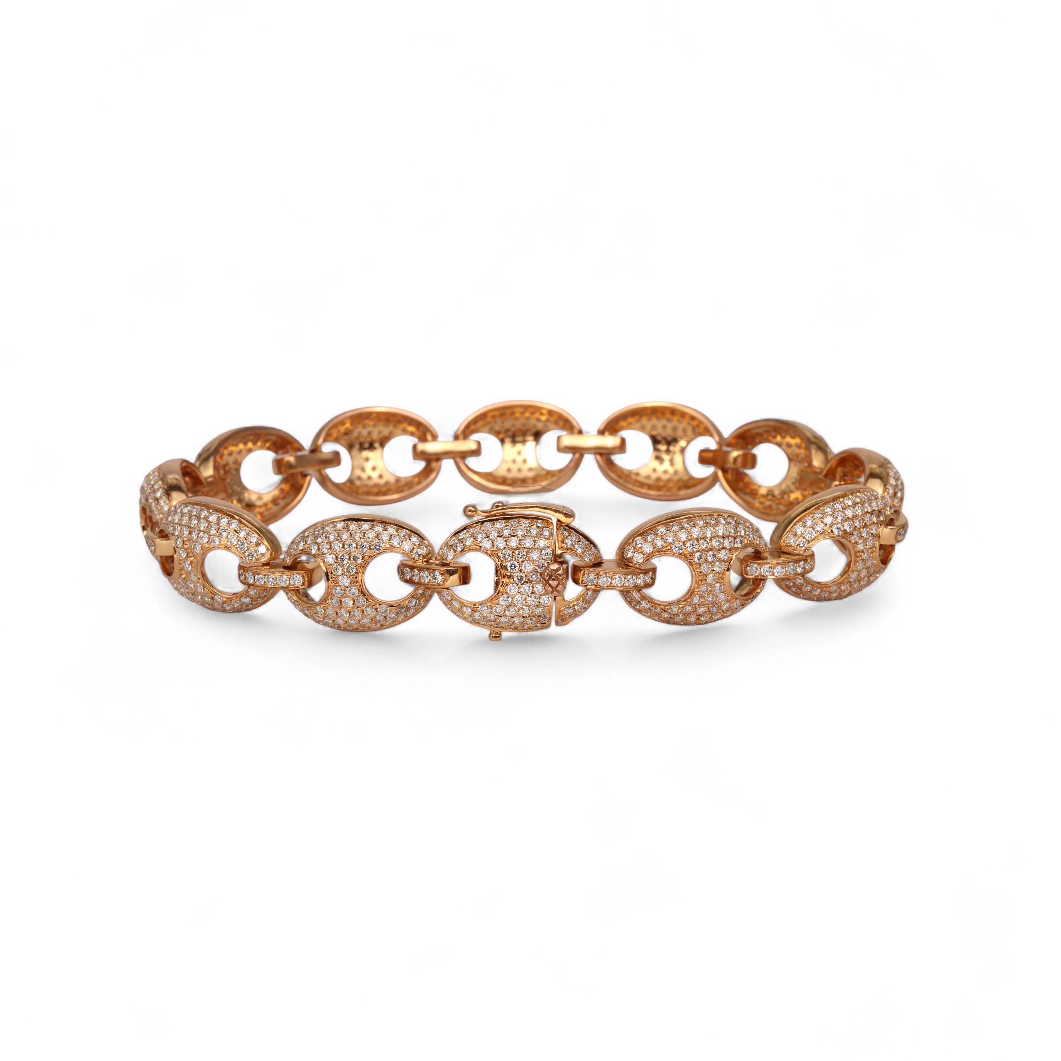 14K Yellow Gold 7.00 Carat Natural Pave Diamond Puffed Mariner Link Bracelet