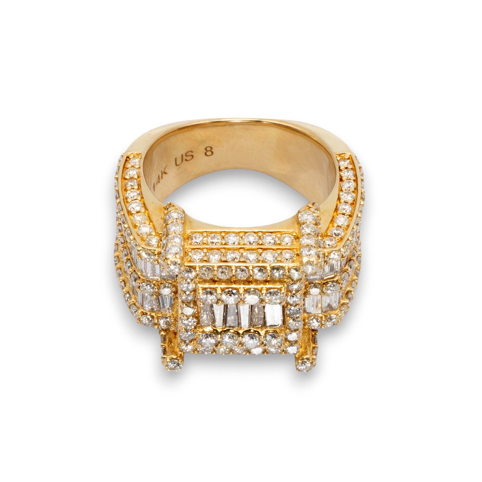 14K Yellow Gold 6.00 Carat Natural Diamond Square Layered Cluster Ring