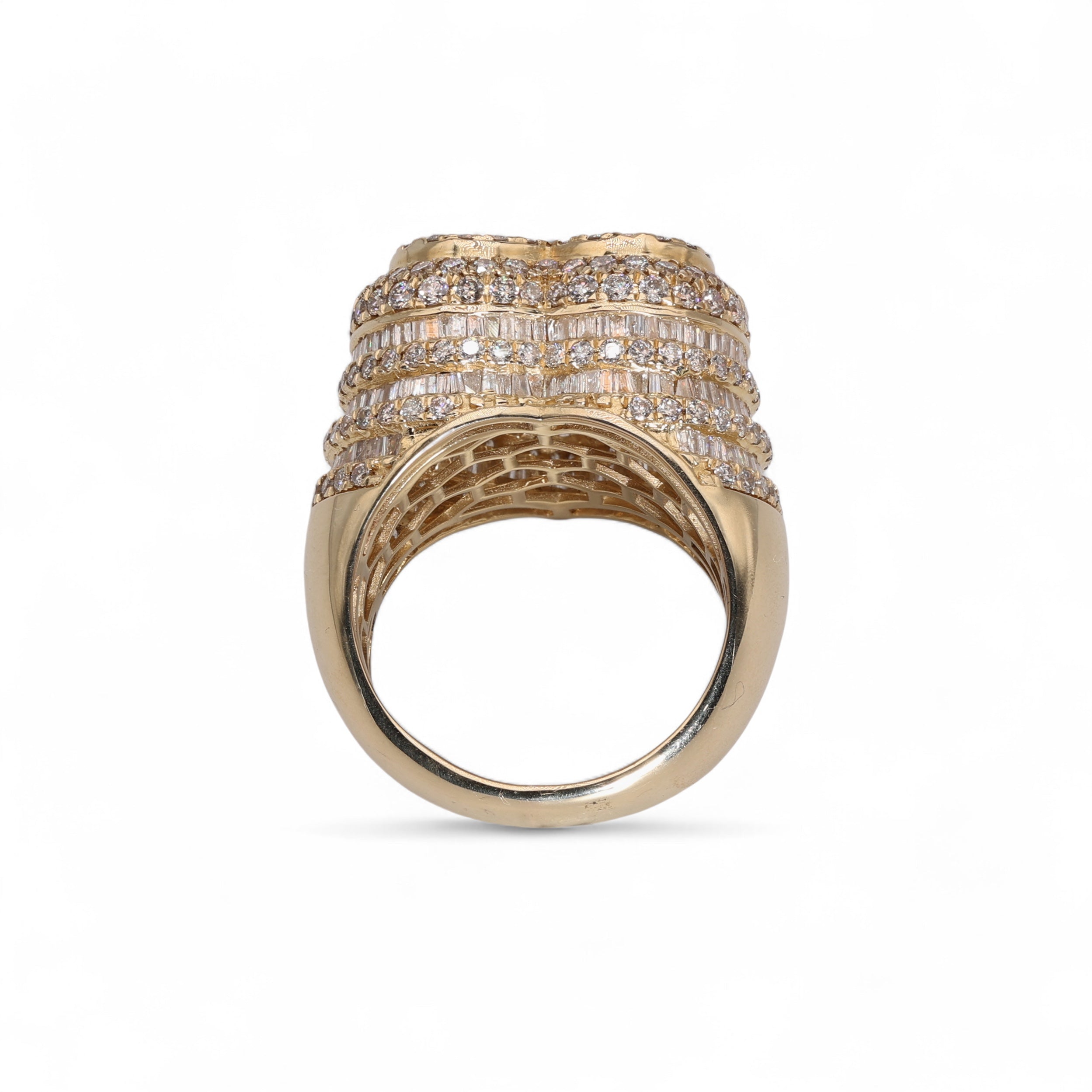 14K Yellow Gold 4.20 Carat Natural Diamond Iced-Out XL Dome Heart Ring