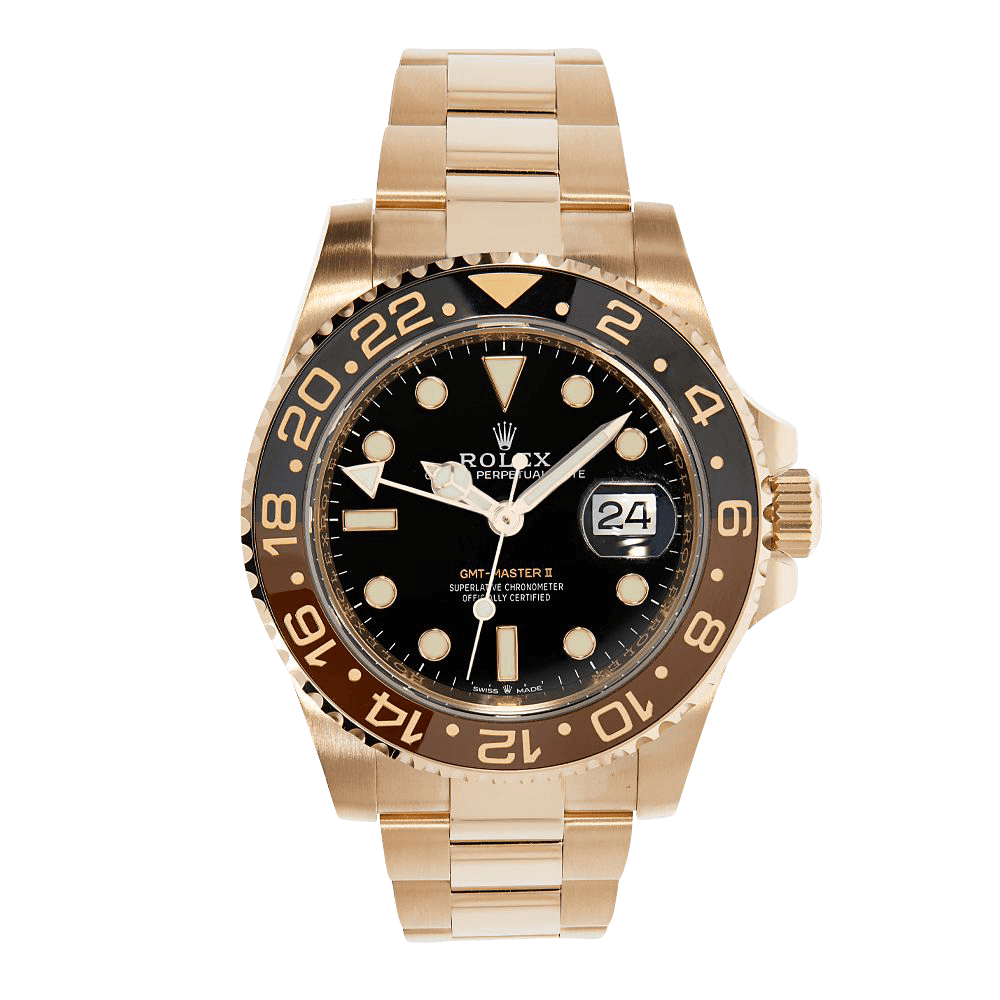 Rolex GMT Master II - Root Beer Rose Gold Index Dial Watch 126715CHNR